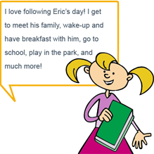 Throughout this interactive experience, your child gets to meet Professor Toto's friends: Sophia, an adorable little girl and Professor Toto's exemplary student and Eric; an amusing boy who introduces his entire family and chats about his day.